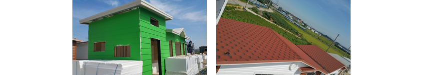 ②지붕 : 샌드위치판넬 위 방수 시트, 아스팔트 슁글 작업