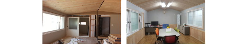 ②벽체, 천정 : 스치로폴 위 무취 미장합판 작업