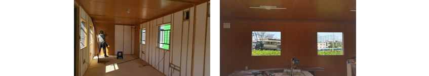 ②벽체, 천정 : 스치로폴 위 무취 미장합판 작업
